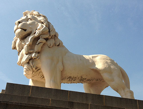شیر بانک جنوبی در سنگ کود ، در انتهای جنوبی پل وست مینستر ، لندن
